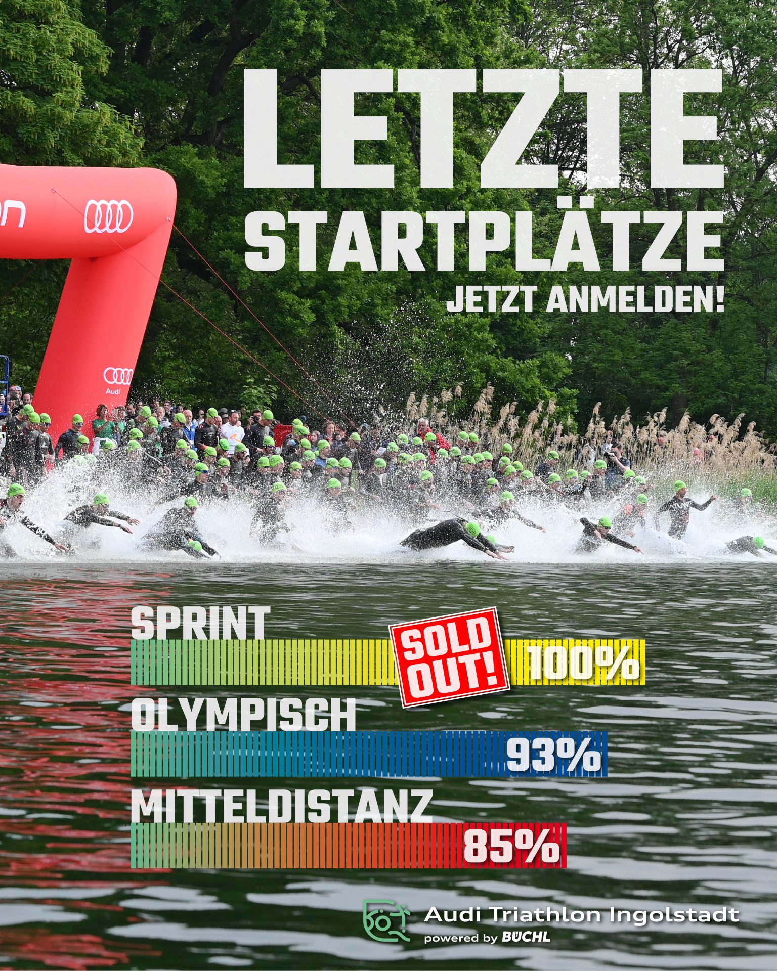 Der Audi Triathlon Ingolstadt powered by BÜCHL am 14.06.2026 rückt näher – und die letzten Plätze sind fast weg! 🏊♂️🚴♀️🏃♂️